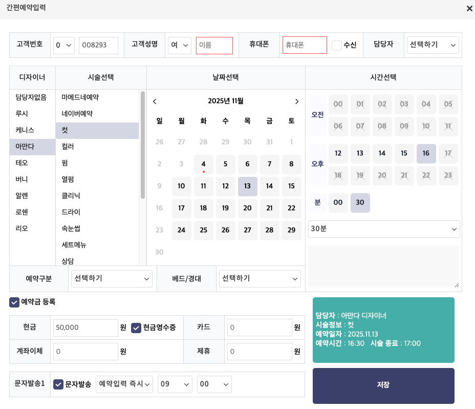 - 고객 등록부터 예약까지 한 번에 확인이 가능합니다.