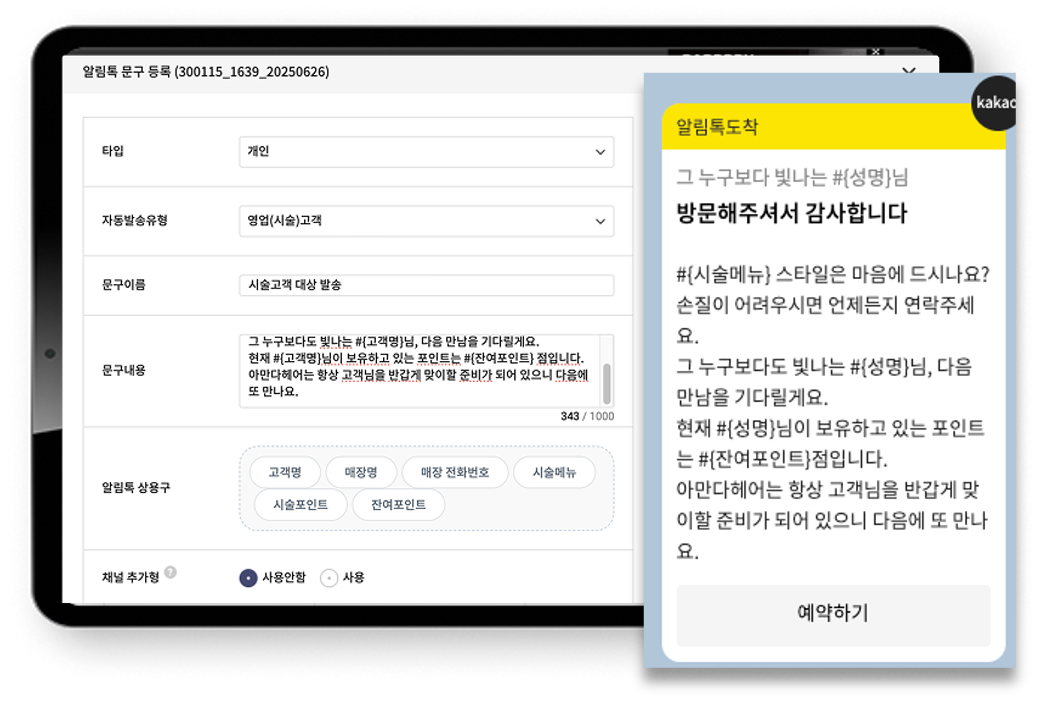 문자 대신 카카오톡 채널로 자동 발송, 마케팅 비용을 최대 30% 절감할 수 있습니다.