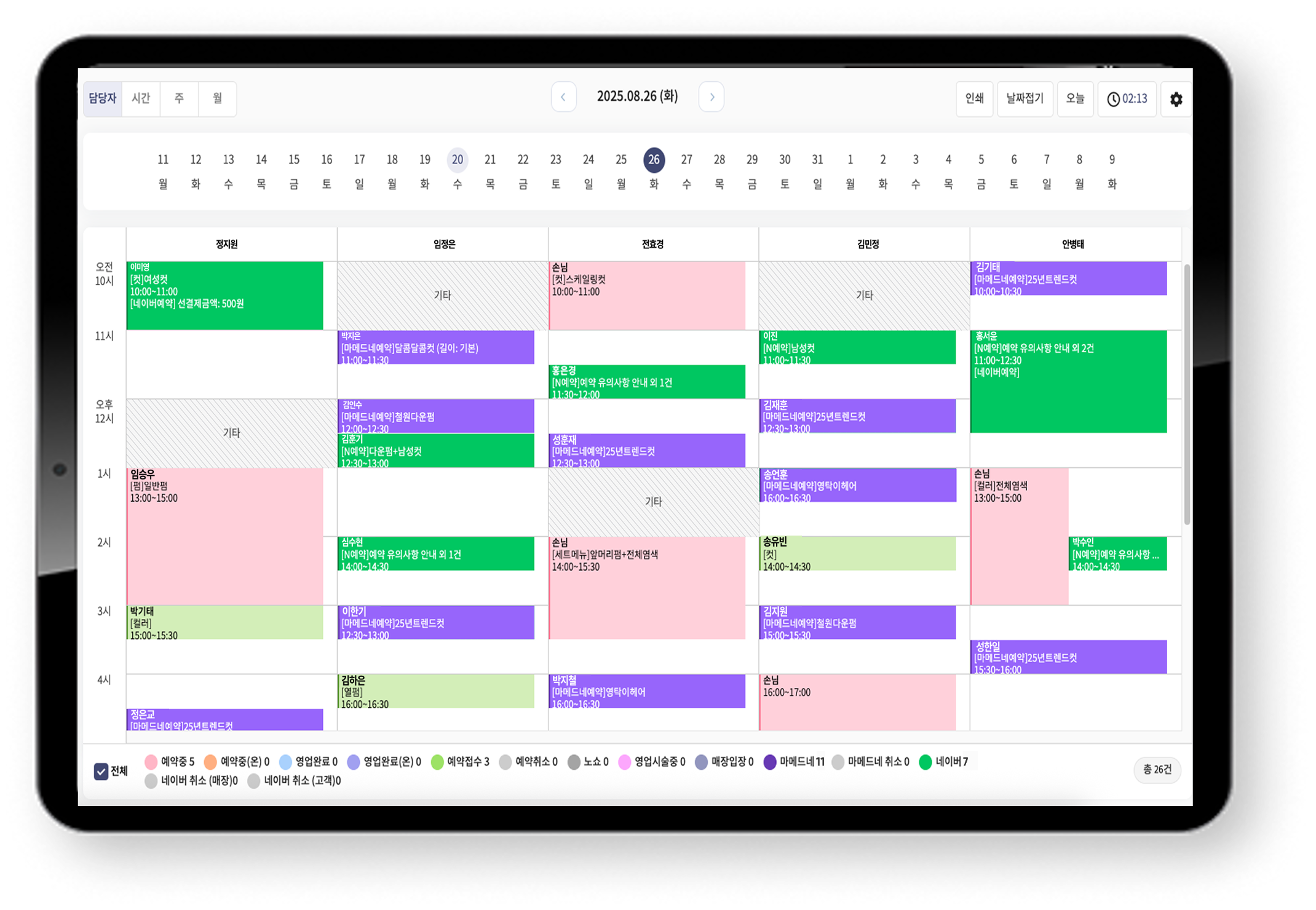 매장의 모든 예약 채널을 헤어짱 예약현황판 하나에서 한눈에 확인하고 관리하세요.