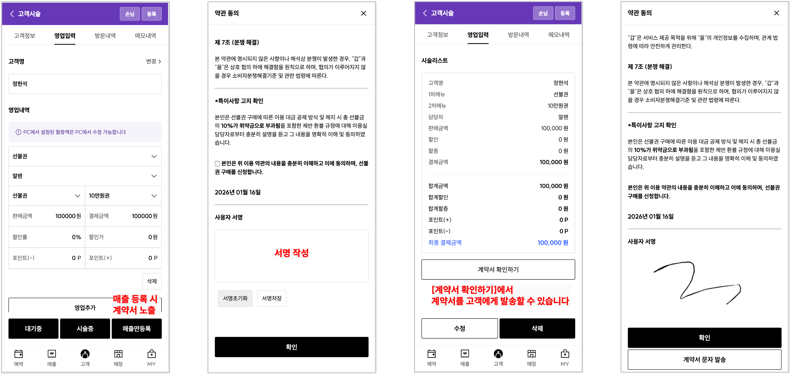 4) 전자 서명 진행(매장 고객)