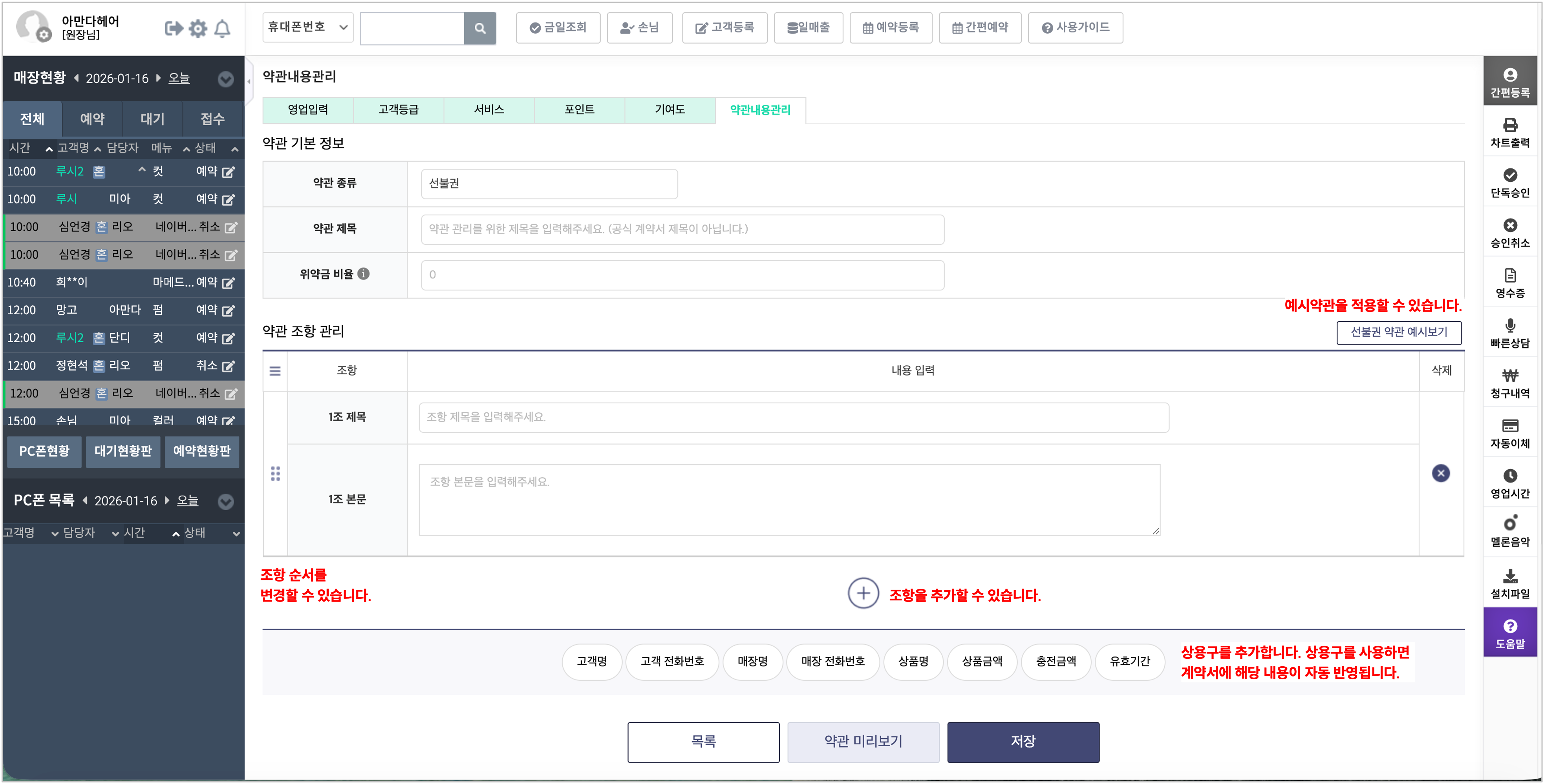 - 계약서 약관 작성 및 저장 기능 추가
