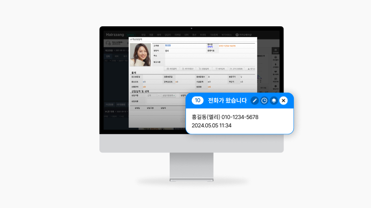 휴대폰으로 전화한 헤어짱 등록 고객의 상세고객정보를 앱푸시를 통해 바로 확인,